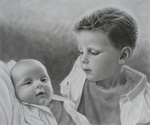 2011Portret van zus en broer, Sanne en Joris. Dit was een vervolgopdracht: jaren geleden heb ik ze als kleine kinderen getekend, samen met hun moeder (het portret 'moeder met kinderen' dat ook in de galerie is opgenomen).